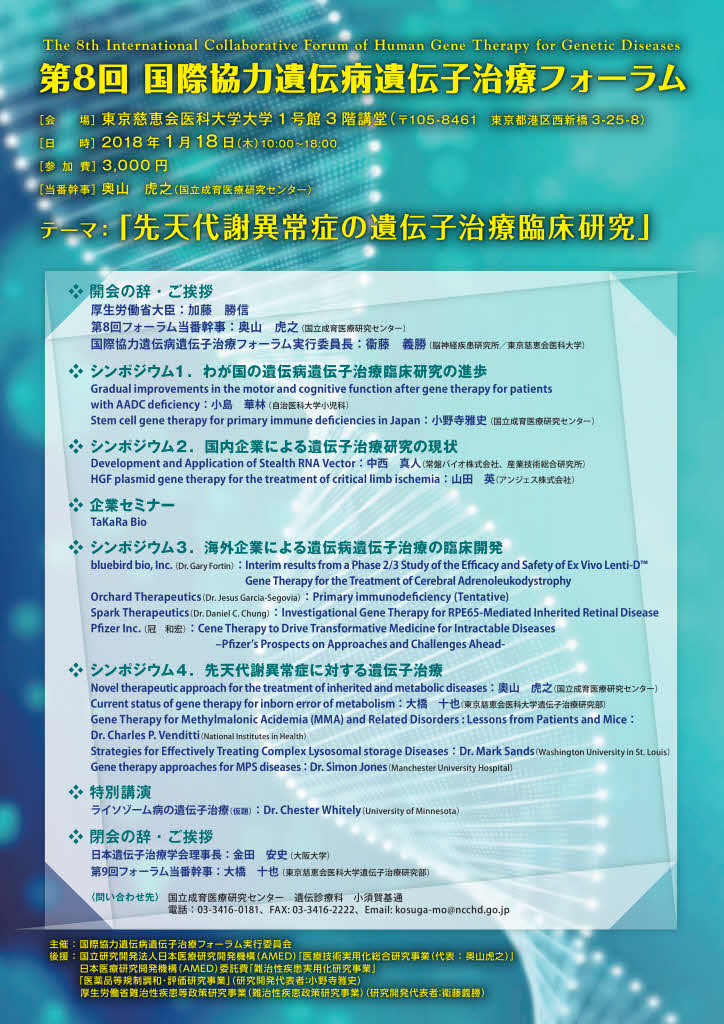今回のフォーラムのテーマは、「先天代謝異常症の遺伝子治療臨床研究」です。